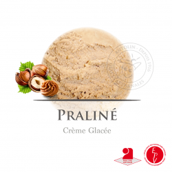 Crème glacée praliné avec morceaux de noisettes caramélisées, crémeuse, onctueuse et souple, travaillée avec des matières premières de qualité.
