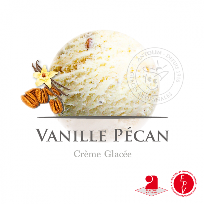 Choix idéal pour les professionnels, grâce à cette préparation artisanale des Maitres Artisans Glaciers de la Maison Antolin d'une glace vanille pécan de qualité.