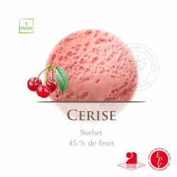 Sorbet à la purée de cerises griottes, fondant et lisse, travaillé avec des matières premières de qualité.