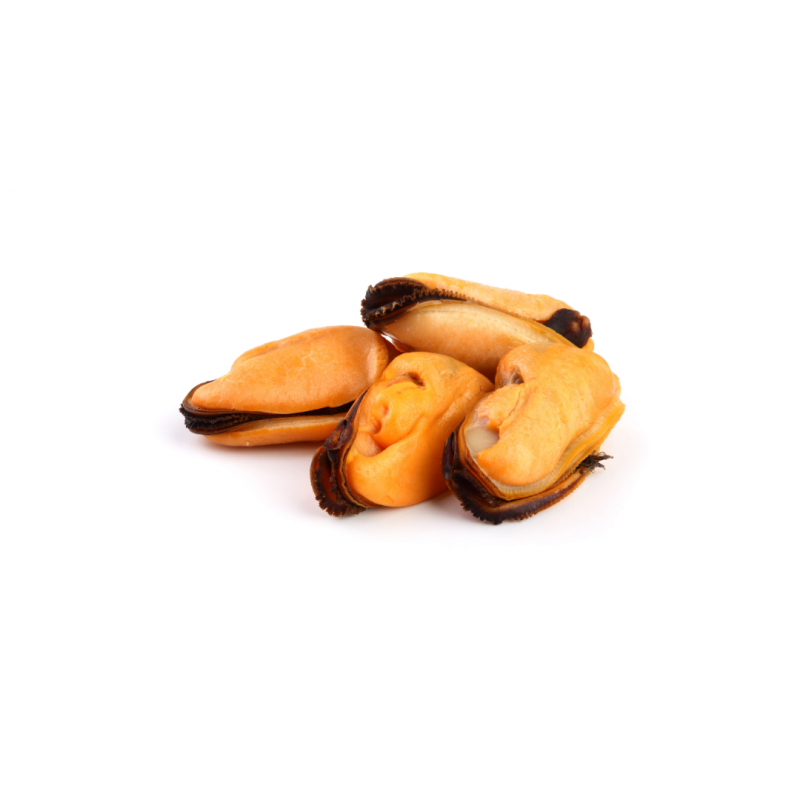 Chair 100% moules de corde du Pacifique IQF, "Mytilus Chilensis" mollusque décoquillé, issu d'aquaculture du Pacifique.
