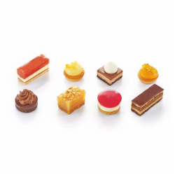 Chocolat noir de couverture 59% de cacao 10.6% (pâte de cacao, sucre, beurre de cacao, émulsifiant : lécithine de soja), crème (crème de lait, stabilisant : carraghénanes), sucre, beurre (lait), biscuit joconde (oeufs entiers, sucre, farine de blé (gluten), eau, poudre d'amande, farine de pois, poudre à lever : diphosphates carbonate de sodium (contient amidon de blé (gluten)), émulsifiant : mono et diglycérides d'acide gras, fécule de pomme de terre, protéines de lait), farine de blé (gluten), purée de fraise 4.4% (fraise, sirop de sucre), blancs d'oeufs, poudre d'amandes, eau, pommes caramélisées 3.6% (pomme, caramel (sucre, sirop de glucose-fructose, eau), acidifiant : acide citrique, antioxydant : acide ascorbique), purée d'abricot 2.7% (abricot, sirop de sucre, antioxydant : acide ascorbique), oeufs entiers, fraise 2.5%, purée de framboise 1.9% (framboise, sucre), purée de pommes vertes 1.8% (pomme, sucre, correcteur d'acidité : acide citrique, antioxydant : acide ascorbique), nappage (eau, sirop de glucose, sucre, gélifiant : pectine, acidifiant : acide citrique), sirop de glucose, fromage 1.6% (fromage (lait), sel), jus de citron à base de concentré 1.3%, sucre roux, biscuit Joconde au cacao (oeufs entiers, sucre, farine de blé (gluten), poudre de cacao, eau, sucre inverti, farine de malt d'orge torréfiée (gluten), farine de pois, poudre à lever : diphosphates carbonate de sodium (contient amidon de blé (gluten)), émulsifiant : mono et