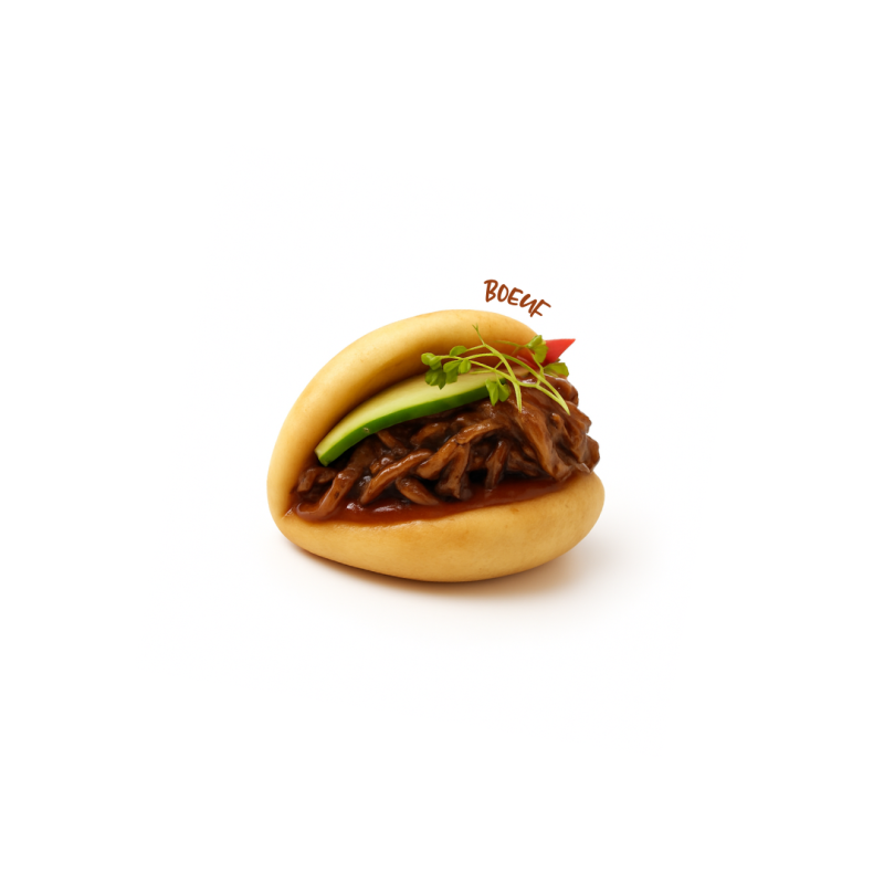 pain bao farine de blé (gluten), eau, sucre, huile de tournesol, levure, sel, 10% queue de buf, jarret de buf, oignon frit oignon, huile d'olive, sel, correcteur d'acidité : E330, piments piquillo piments piquillos, eau, sucre, sel, acidulant : E330 ; durcisseur : E509, carotte, 3% sauce hoisin sucre, eau, pâte de soja fermentée (eau, sel, soja, farine de blé (gluten)), sel, poudre de patate douce, colorant : E150a ; amidon de maïs modifié, ail déshydraté, pâte de sésame, épices, piments salés, acidulant : 260, sel, huile de grignons, sauce soja eau, soja, blé (gluten), sel, vinaigrette citron eau, acidifiant ; jus de citron concentré, émulsion de citron, conservateur ; (sulfites), gingembre, sucre, ail, zeste de citron et huile de sésame